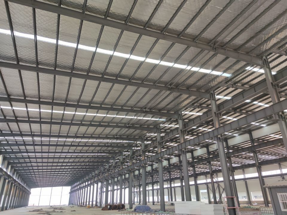 Prefabrykowana konstrukcja stalowa z możliwością dostosowania rozmiaru i wysoką odpornością na wiatr wykonana ze stali, obejmująca konstrukcję nośną i konstrukcję usztywniającą. Główna rama jest zaprojektowana jako sztywna rama portalowa, obejmująca słupy stalowe i belki stalowe. System usztywniający jest połączony z prętami ściągającymi, usztywnieniami poziomymi, usztywnieniami słupów oraz płatwiami i ryglem ściennym. Wszystkie elementy zapewniają stabilność i wytrzymałość całej konstrukcji. Stalowa rama portalowa i zewnętrzna konstrukcja obudowy stanowią zamkniętą konstrukcję budynku o wystarczającej wytrzymałości, aby wytrzymać trudne warunki atmosferyczne, takie jak silny wiatr, deszcz i śnieg.